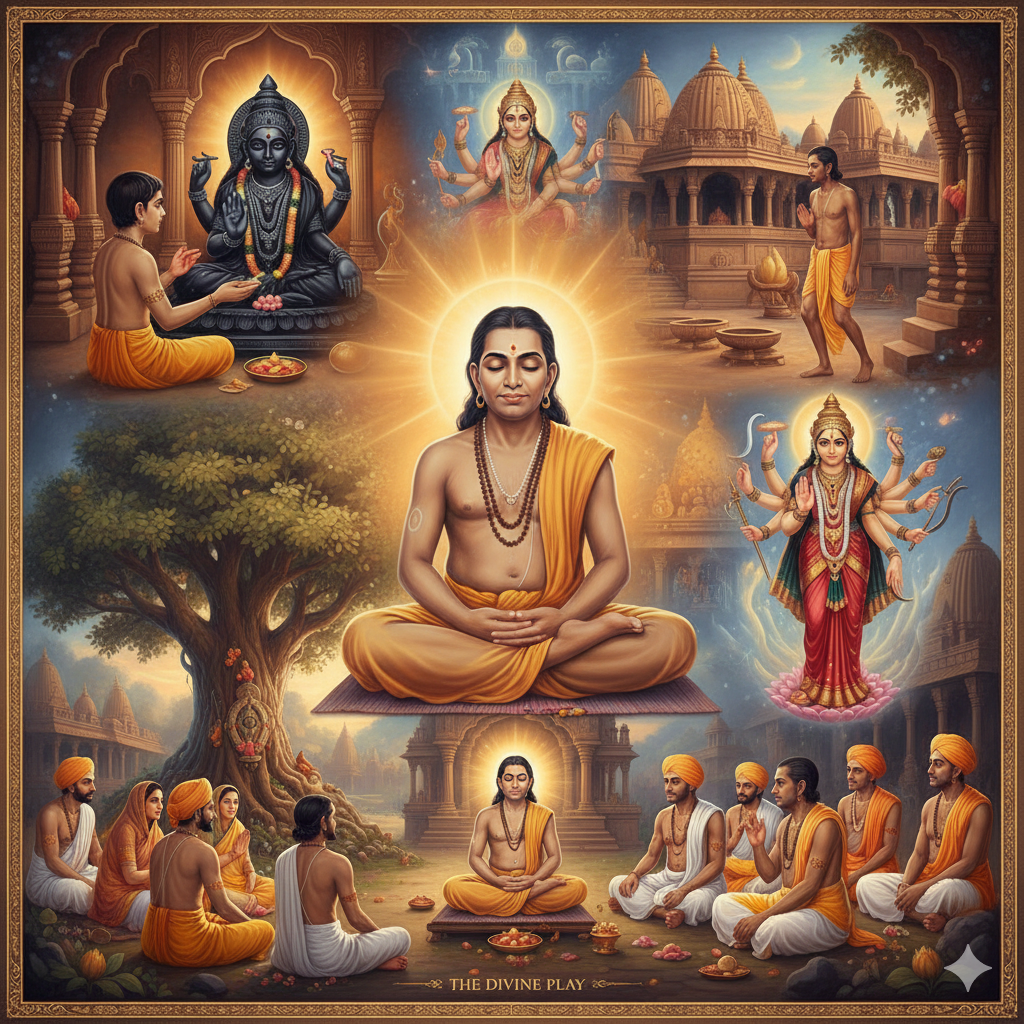 Sri Ramakrishna’s life journey reflects pure devotion, intense spiritual practice, divine realizations, and universal teachings that inspired countless seekers toward truth and God-realization.